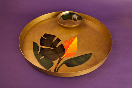 In every Indian home, the banana tree has stood as a quiet symbol of prosperity and grace. Its broad leaves cradled festive feasts, its blossoms marked sacred rituals, and its fruit offered sweetness to every celebration. With hand-painted strokes on gleaming Pital and Kansa, the Patra Collection brings this timeless heritage to your table - a reminder of abundance, tradition, and the art of dining together.